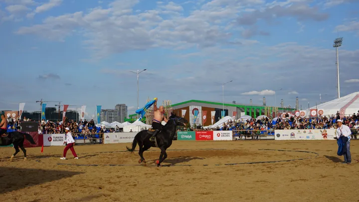 Centraal-Azië, met sporten die ver teruggaan in de tijd. Denk aan pijl-en-boogschieten vanaf een galopperend paard, jagen met roofvogels, en vooral Kok Boru, een soort rugby te paard met – normaal gesproken – een onthoofd geitenkarkas.