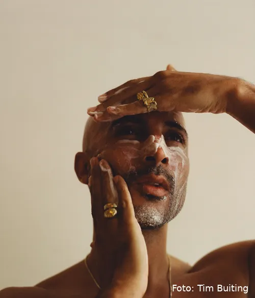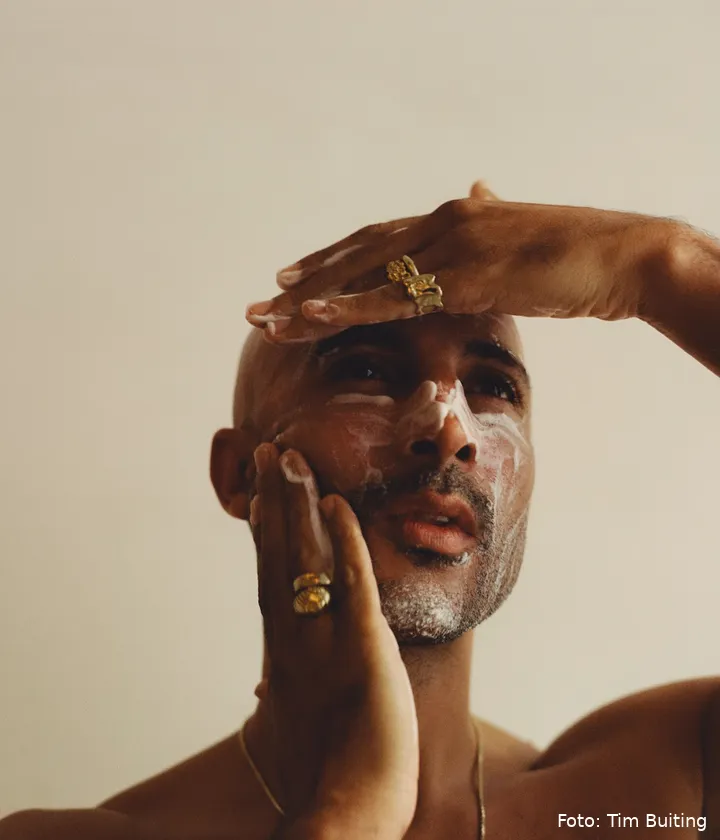 The Opposites en zijn solocarrière, leeft het leven van een creatieve multitasker. Nachten in de studio, optredens, reizen en vaderschap: zijn agenda is vol, en zijn huid kreeg daar de klappen van. Hij heeft al sinds zijn jeugd last van psoriasis. “Op een gegeven moment heb ik de keuze gemaakt: het is tijd om beter voor mezelf te zorgen. Sporten, beter eten en iets vinden dat ook mijn huid helpt.” Want waarom zou je