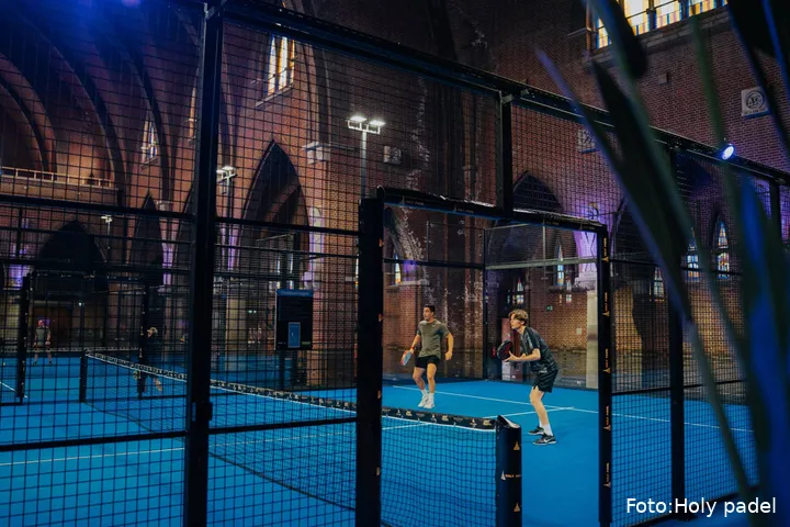 niet de meest creatieve naam, maar de locatie maakt alles goed. Deze bijzondere padelbaan is gevestigd in de Sint-Jozefkerk, een bouwwerk dat