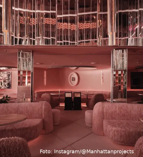 restaurant heeft een open sfeer. Veel roze muren, planten en natuurlijk licht. Misschien is de roze kleur niet echt iets waar de meeste mannen enthousiast van worden, je date waarschijnlijk wel. Er is ook een donkere en duistere ruimte. Daar is de bar te vinden, misschien iets meer voor jou.
