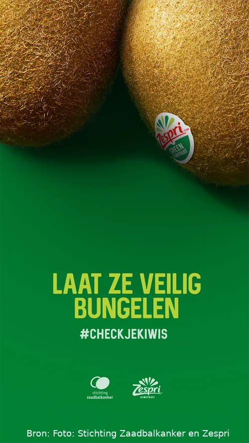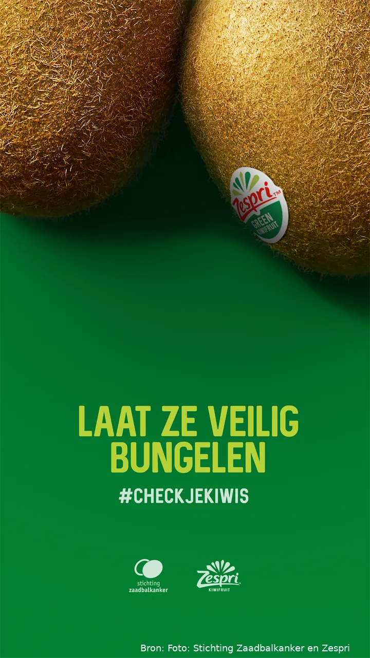 Toch vinden veel mannen het ongemakkelijk om überhaupt over hun klokkenspel te praten, laat staan om ze regelmatig te checken. En daar komt deze campagne om de hoek kijken. Stichting Zaadbalkanker en Zespri gebruiken humor, en ja, kiwi’s, om het gesprek op gang te brengen. Geen flauwekul, maar een laagdrempelige manier om te laten zien hoe je zelfonderzoek doet en waarom dat belangrijk is.