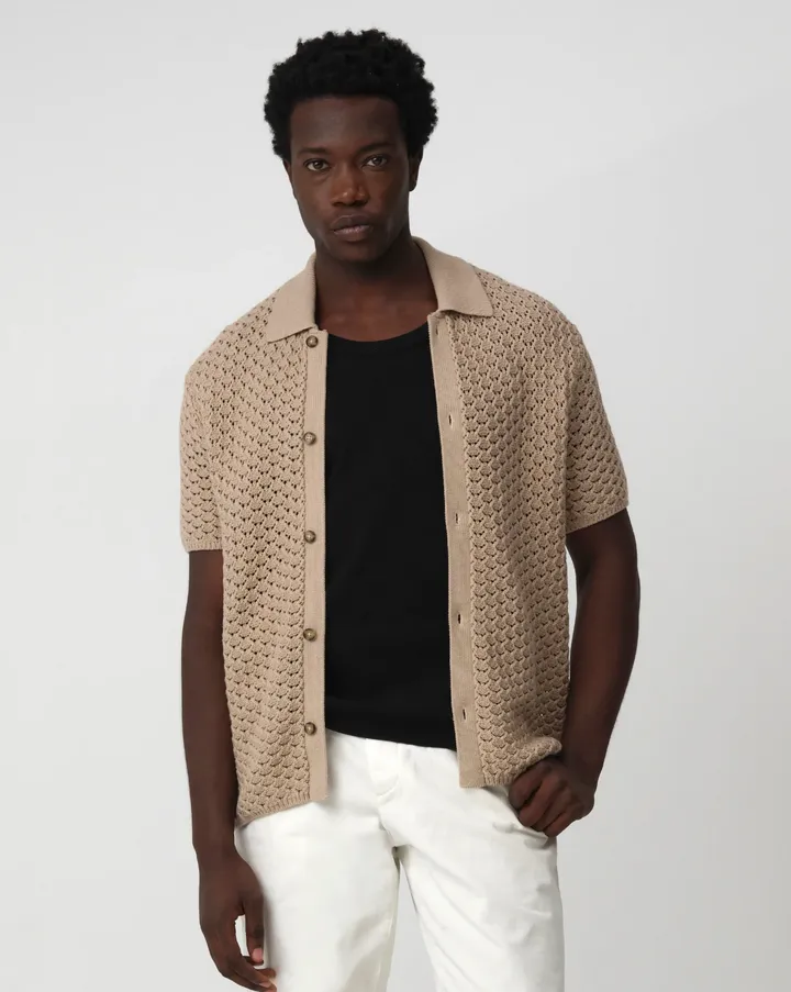 Voor een relaxte look gooi je ’m over een denim short met een paar frisse sneakers eronder. Wil je een tikje netter, combineer ’m dan met een chino en loafers (zie foto hierboven), perfect voor die cocktails op een rooftopbar. Je kan natuurlijk ook gaan voor een casual gelaagde stijl door hem open te dragen over een wit T-shirt. Ideale look voor op een festival.