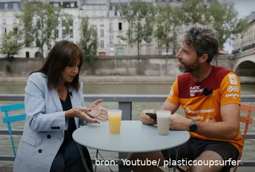 Merijn kreeg niet alleen te maken met gevaarlijke zeeën en sterke stromingen van de Seine, maar ook de kou en vermoeidheid sloegen toe. Zijn symbolische surfplank is gemaakt van gerecycled materiaal. Dat is wel echt een statement, hè? In Parijs had hij een belangrijk gesprek met burgemeester
