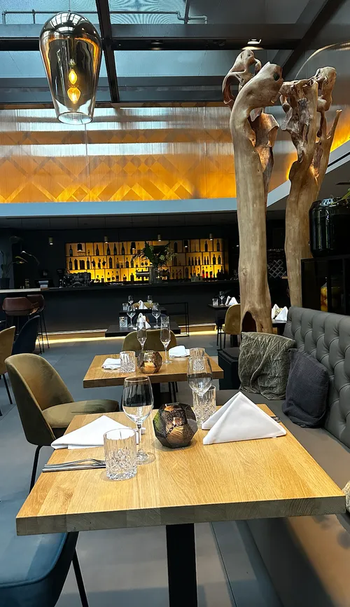 Fijne ambiance hoor. Rustige sfeer, ruim opgezet, hoge plafonds, fijn muziekje op de achtergrond, grote open keuken om naar te kijken. Echt een topplek om onder het genot van goed eten bij te praten met je date, vrienden, collega’s of klanten. Ook zakelijk een uitstekende plek om mensen mee naartoe te nemen als je wil proosten of die deal wil binnenslepen.