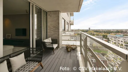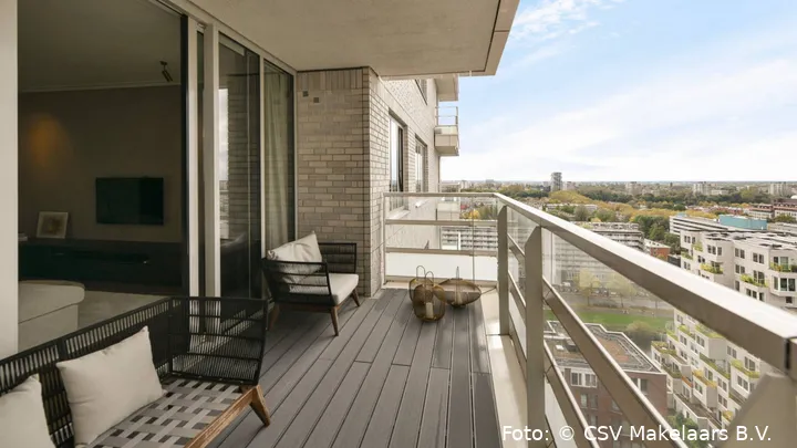 woning gelegen op de 15e verdieping met een prachtig uitzicht over de stad. Het woonoppervlakte bedraagt 129 vierkante meter en de woning beschikt over twee badkamers, drie slaapkamers en natuurlijk een keuken. Veel mensen in Amsterdam moeten zuinig doen met de ruimte die ze hebben in hun woning, maar daar is bij Frenkie's oude appartement duidelijk geen sprake van.