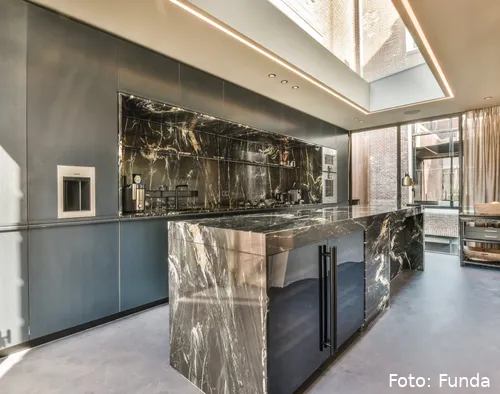 Zodra je de voordeur opent, voel je het meteen: dit is geen standaard woning. De hal is een showstopper op zich, met een marmeren vloer die in spiegelpatroon is gelegd en een plafond met originele, gerenoveerde ornamenten. De grachtenkamer biedt een spectaculair uitzicht op de Herengracht en heeft een gashaard voor de nodige sfeer. Vanuit de zitkamer stap je zo de eetkamer in, van waaruit je uitkijkt op je eigen stadstuin. De Bulthaup keuken is een droom, compleet met Gaggenau inbouwapparatuur en een marmeren blad.