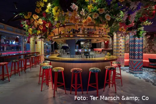 Zodra je de deur opent van Ter Marsch & Co, word je begroet door de onweerstaanbare geur van perfect gegrilde burgers en een interieur dat aanvoelt als een gezellige stadsjungle. Met een vestiging in het hart van Rotterdam en twee hotspots in Amsterdam heeft deze burgertent zichzelf stevig op de kaart gezet. Wij schuiven aan om te ontdekken waarom Ter Marsch & Co zo geliefd is. We lopen Ter Marsch binnen en worden overweldigd met honderden verschillende soorten bloemen die aan het plafond zijn bevestigd. Met sfeervolle verlichting en het kleurrijke interieur begrijpen we meteen al waarom deze burgerwalhalla zo hoog op de lijst staat. Het is een plek waar je zowel met je maten als met een date moeiteloos aanschuift.