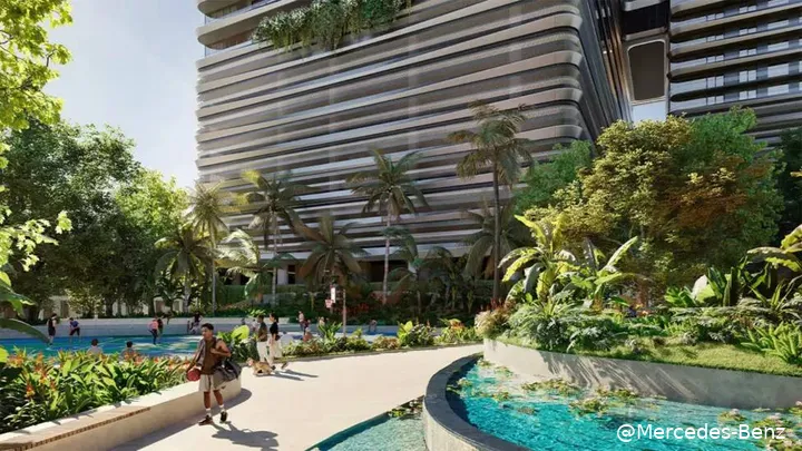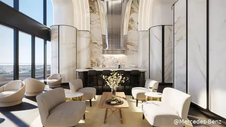 perfecte mix van natuur en stedelijke elegantie in de Mercedes-Benz Tower. Denk