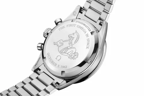 Wat direct opvalt bij de nieuwe uitvoering is de dikte: met 13,4 mm is het horloge slanker dan zijn voorgangers en herbergt het de moderne Co-Axial Master Chronometer Calibre 3861 — de nieuwste generatie van het kaliber dat de originele FOiS aandreef. De achterkant van de kast is versierd met een gegraveerde Seahorse-medaille, samen met de inscripties ‘Speedmaster, The First Omega in Space’ en October 3, 1962’, als verwijzing naar de missie van Schirra.
