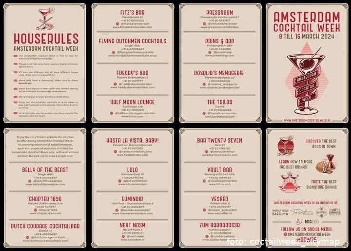 Toe aan iets anders dan je standaard café? Of ben je gewoon een liefhebber van goede cocktails en op zoek naar iets nieuws? Van 8 tot 16 maart kun je tijdens Amsterdam Cocktail Week 2025 de beste bars van Amsterdam ontdekken. Negentien bars door de stad serveren een week lang creatieve signature cocktails, met én zonder alcohol. Of je nu houdt van klassiekers of verrassende nieuwe combinaties, dit is het perfecte moment om iets nieuws te proberen. Nieuwe data, nieuwe ervaringen
