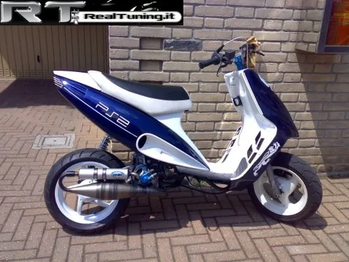 De Phantom was ook een zeer geschikte tweewieler om te tunen. Een trommelvlies verscheurende uitlaat en een setje vijfspaaks velgen erop knallen en klaar is Kees. Pimp my ride voor je scooter.