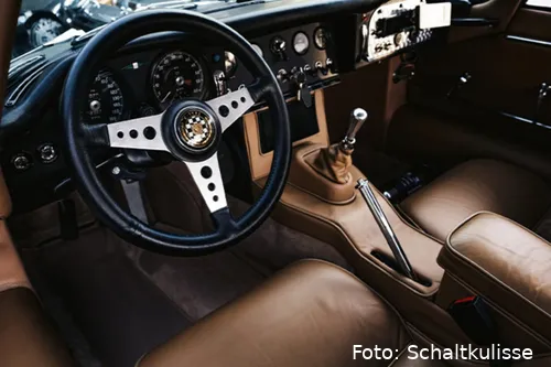 Hoewel de uitstraling van de E-Type authentiek is, is het interieur modern en functioneel. De originele snelheidsmeter en radio zijn vervangen door een moderne dashboard met rally tripcomputers, bandenspanningssensoren, en een navigatiesysteem. Het wordt nog beter: er is nu airconditioning, en zelfs de stuurwiel is vervangen door een sportiever model. Toch blijft de originele charme behouden, want het originele dashboard en de klassieke radio komen bij de auto.