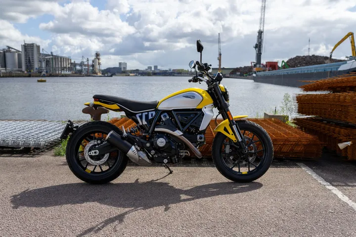 De nieuwe generatie van de Ducati Scrambler is volledig opnieuw ontworpen met als doel om de karaktereigenschappen waar het model bekend om staat te behouden. Dus hebben ze een knappe easy rider ontwikkeld die erg leuk is om te rijden, maar met een moderne twist. Nou, Scramblerder dan de Icon gaat een Ducati Scrambler niet worden. Dit is de meest pure versie van de drie. Wij krijgen ‘m mee in ’62 Yellow. Mocht ‘ie toch iets te geel voor je zijn, dan kun je ook nog kiezen voor Thrilling Black, Ducati Red of een van de zes andere kleuren die je als accessoire kit (tegen meerprijs) kan kiezen. Qua looks springt verder het sportieve zadel in het oog, waar bij de Icon een paar kruizen in gegrafeerd staan. Het kruis komt overigens bij alle varianten van de Scrambler terug in het voorlicht, waar er X pontificaal over de koplamp is geplaatst. Ook het achterlicht is uitgevoerd met LED-lampjes. Het 4,3 inch TFT-kleurendisplay waarop alle broodnodige informatie is te zien mag er trouwens ook zijn.