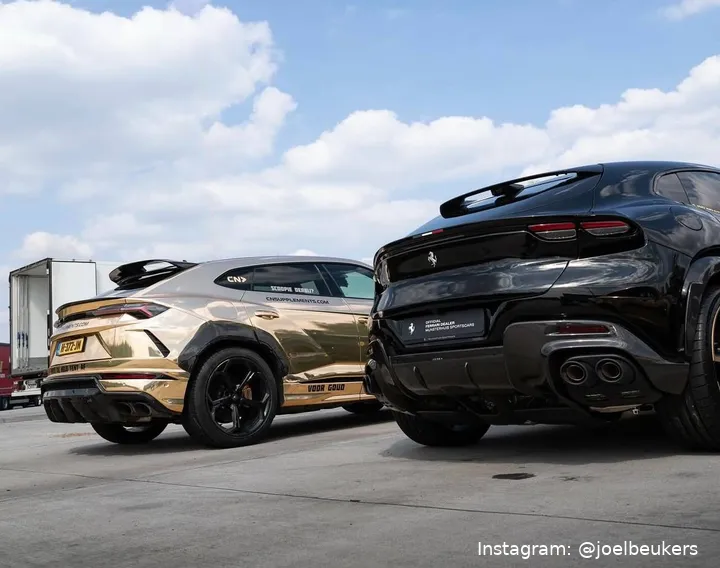 De grote vraag die duizenden volgers op social media bezighoudt, is natuurlijk hoe lang de Ferrari in deze kleur blijft. Joel Beukers staat erom bekend dat hij zijn wagens het liefst in een opvallende gouden wrap steekt om zijn 'Goud Droog' lifestyle te promoten. Een auto is in zijn ogen pas echt af als hij glimt als een goudstaaf. Voorlopig ziet deze Purosangue er in het ingetogen zwart nog behoorlijk mysterieus en dreigend uit, maar bij Joel Beukers weet je nooit hoe lang het duurt voordat de wagen weer in de folie wordt gezet.