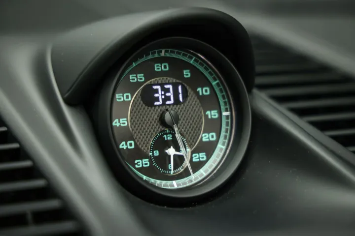 Genoeg geluld over de binnenkant, de chassis en het interieur van deze topper is wat echt in het oog springt. De auto komt in een zogeheten Heritage Design, een kleurstelling wat een ode is naar de Porsche’s uit de jaren 50, 60, 70 en 80. Mocht dat niet genoeg zijn, krijg je er ook nog het sportieve chrono pakket erbij. Te herkennen aan die kenmerkende stopwatch op het dashboard.