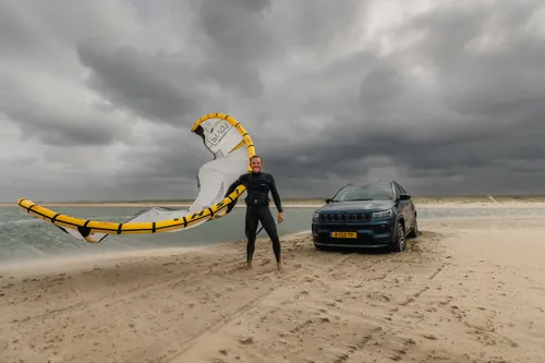 Stig zegt zelf het volgende over zijn samenwerking met Jeep: "Kitesurfen is voor mij het ultieme gevoel van vrijheid, om dit te kunnen communiceren met een auto die me dezelfde vrijheid geeft, is een droom die uitkomt." Met de Compass is elke locatie binnen handbereik en heeft ook nog eens meer dan genoeg ruimte voor zijn gear. Daarnaast is de kitesurfer begaan met het met milieu, dus kiest hij voor de plug-in hybridevariant. Snappen we, want deze heeft 240 trappelende paarden onder de kap zitten. Deze krachtbron in combinatie met de vierwielaandrijving maken van elk onherbergzaam gebied een feestje. De onverzettelijkheid en uitstekende offroad-kwaliteiten van de Jeep Compass bieden Stig de vrijheid om afgelegen plekken langs de kust te bereiken die normaal voor andere auto’s onbereikbaar zijn.