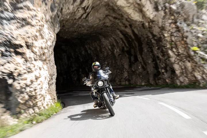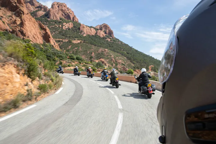 Nieuwe dag, nieuwe bike! We stappen over op de Low Rider S (zonder T), die nog iets puristischer aanvoelt. De route? Zuid-Frankrijk in z’n meest jaloersmakende vorm. We cruisen langs de kust, nemen de prachtige wegen door het Esterel-gebergte en lunchen in Théoule-sur-Mer om de hoek van Cannes.