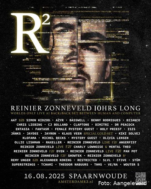 Reinier Zonneveld, de man die techno tot een kunst heeft verheven, heeft zojuist zijn line-up bekendgemaakt voor de tweede editie van het R² Festival. Het festivalseizoen is officieel begonnen, heerlijk! Het is weer die tijd van het jaar waarin we onze zonnebrillen opzetten, te veel bier drinken en proberen te dansen alsof we echt nog jong zijn. Dit jaar komt er weer een knaller. Bereid je voor op een festival dat je niet snel zult vergeten, want het wordt groter, beter en nog gekker dan vorig jaar! En jawel, dat is mogelijk. Dus, wat kunnen we verwachten? Nou, naast