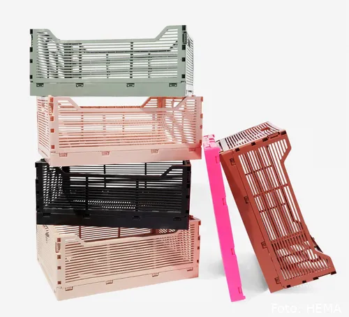 Niet iedereen wil de hoofdprijs betalen voor een beetje recycling chic. Gelukkig biedt de Hema een budgetvriendelijke oplossing die er toch geweldig uitziet. Hun inklapbare krat is makkelijk op te stapelen en beschikbaar in verschillende kleuren. Bestel nu