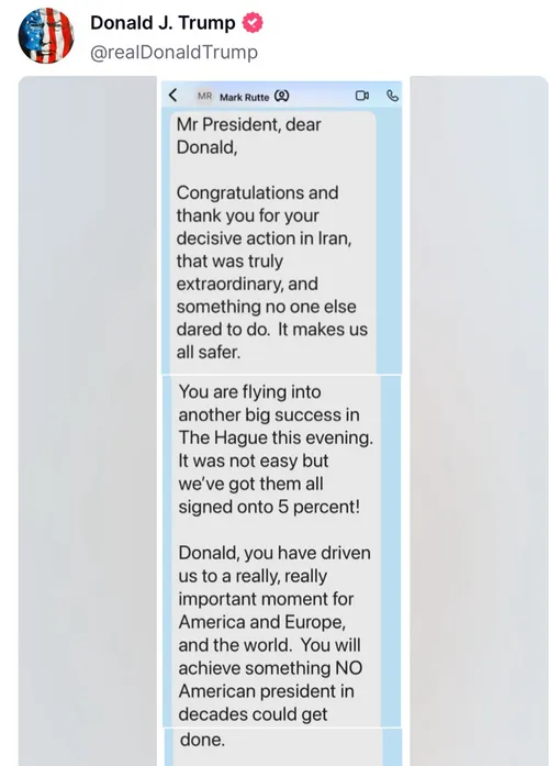 Mark Rutte, voormalig premier en inmiddels de grote baas van de NAVO, heeft zich in een reeks appjes richting Donald Trump ontpopt tot een soort politieke fangirl. In een berichtje dat Trump zelf trots op sociale media slingerde, bedankt Rutte hem uitbundig voor het feit dat Europa nu fors meer gaat betalen aan defensie. “Dat wordt jouw overwinning” schreef Mark. Naast felicitaties voor de verhoogde defensiebudgetten, kreeg Trump in het appje ook complimenten voor zijn aanvallen op Iran. Rutte noemde die “werkelijk uitzonderlijk.” Bij de vraag of zulke uitspraken wel passen bij een NAVO-chef, haalde Rutte zijn schouders op: “Ja hoor, dat heb ik gisteren ook gedaan.”